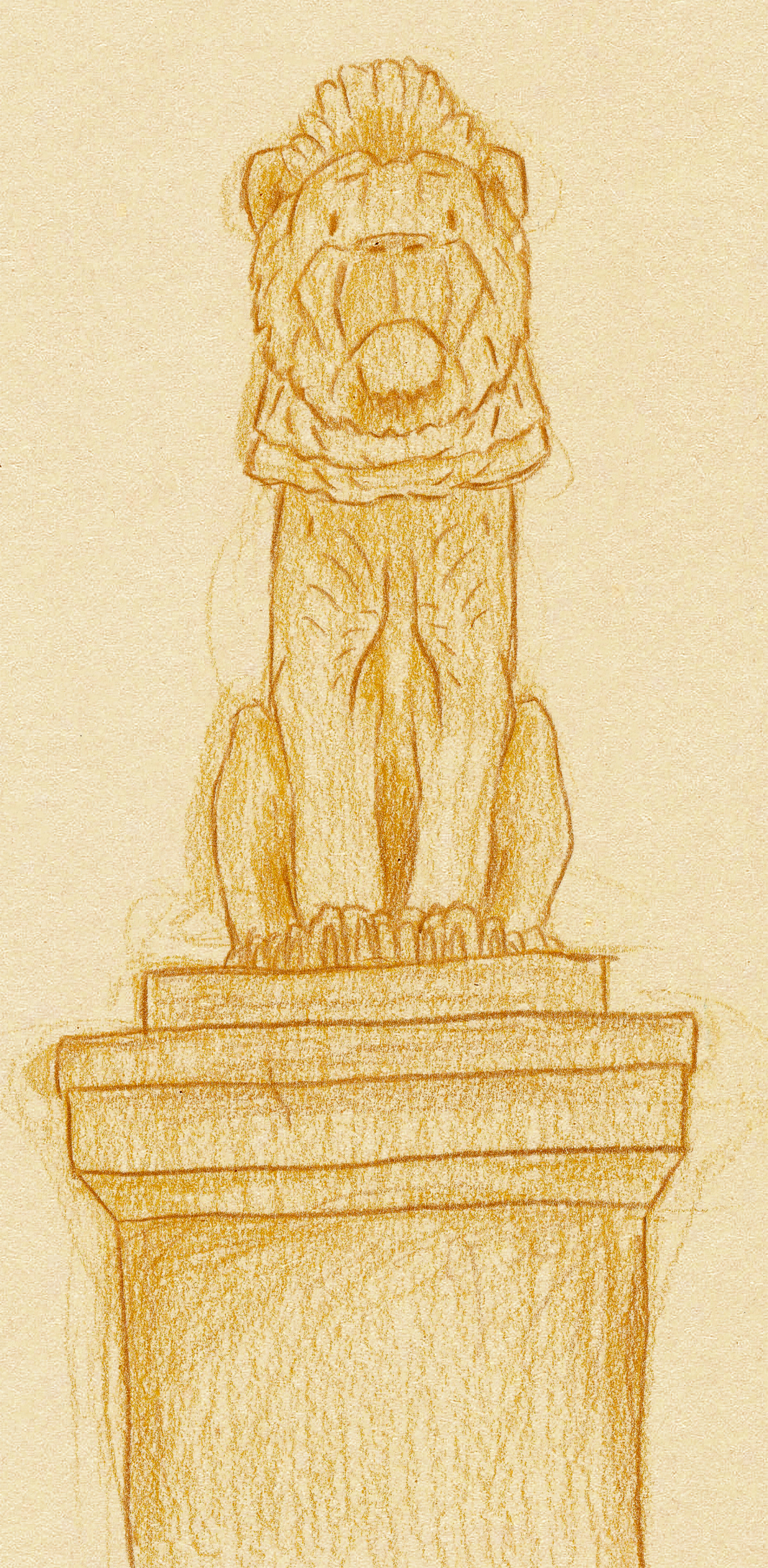 Lion Statue in Bristol Museum and Art gallery, part of a selection of live drawings during a visit to the establishment. Coloured pencil digitally layered on sugar paper.