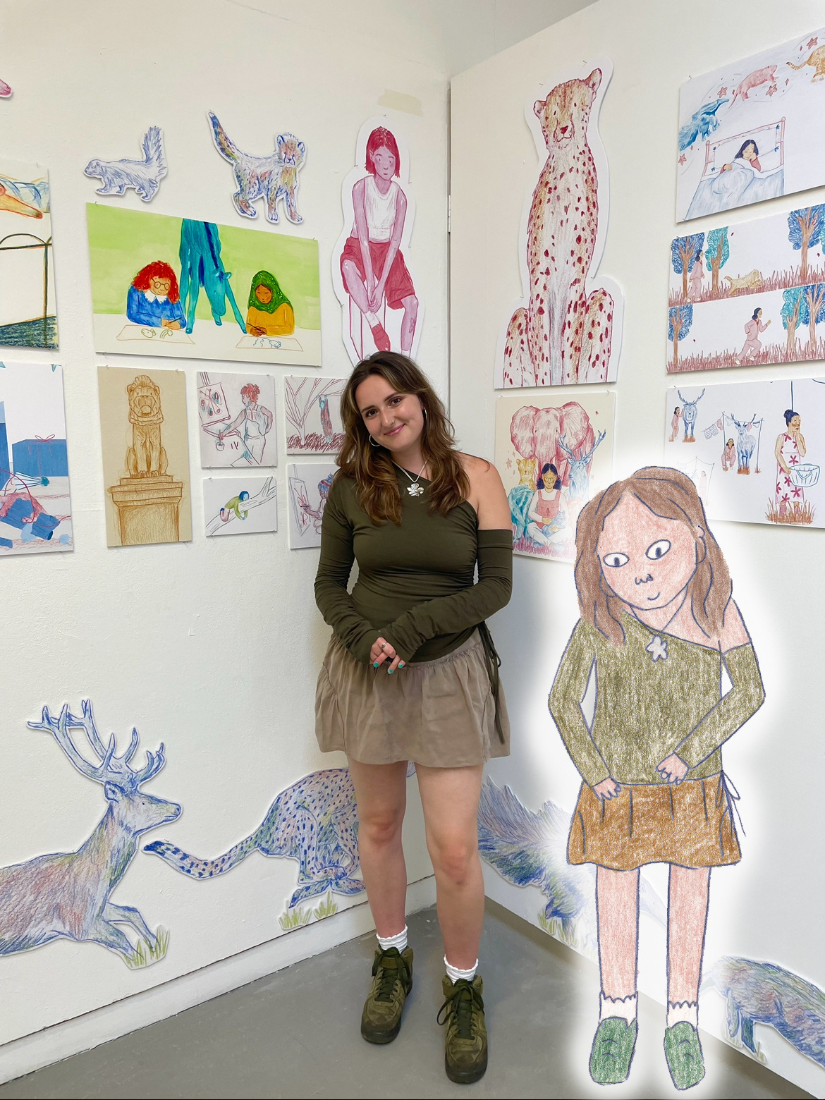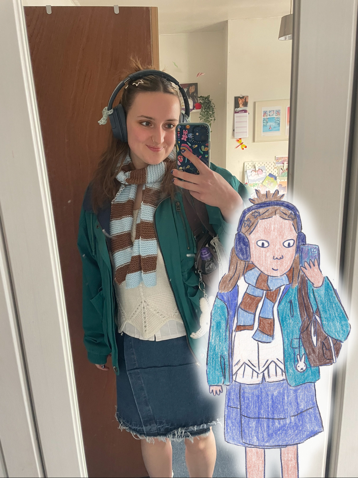 Following an anti-AI artwork TikTok trend, I produced a series of 4 illustrations of myself. These were inspired by Lauren Child's gorgeously illustrated characters like Pippy Longstocking, Charlie and Lola.